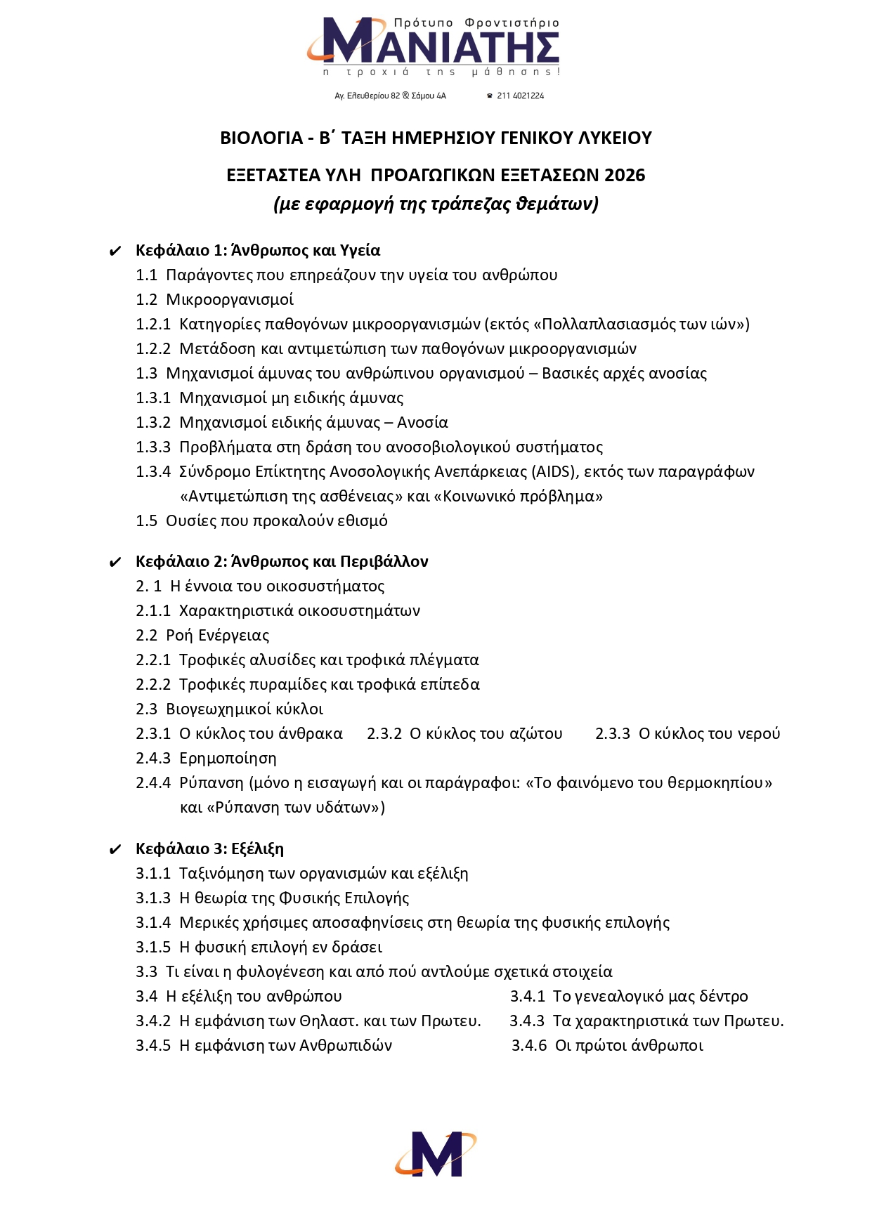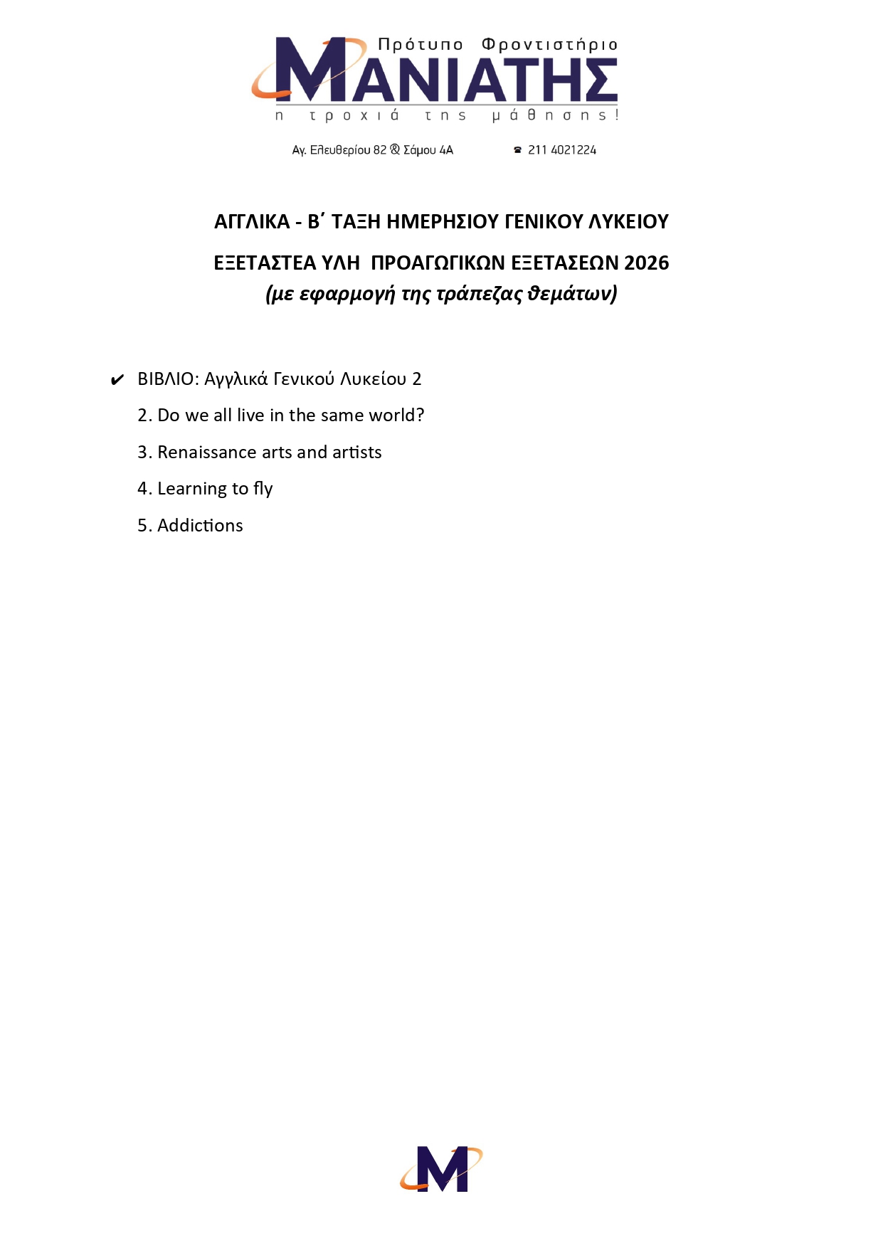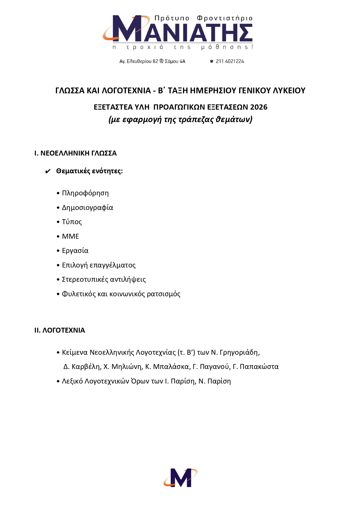 Β΄ ΛΥΚΕΙΟΥ 2026