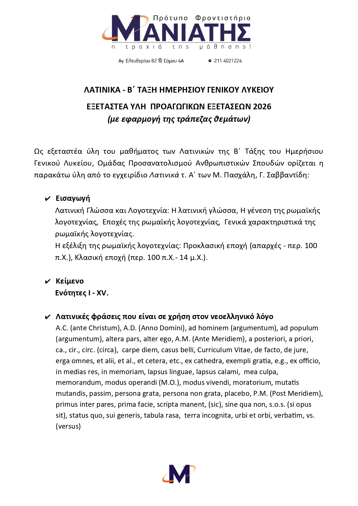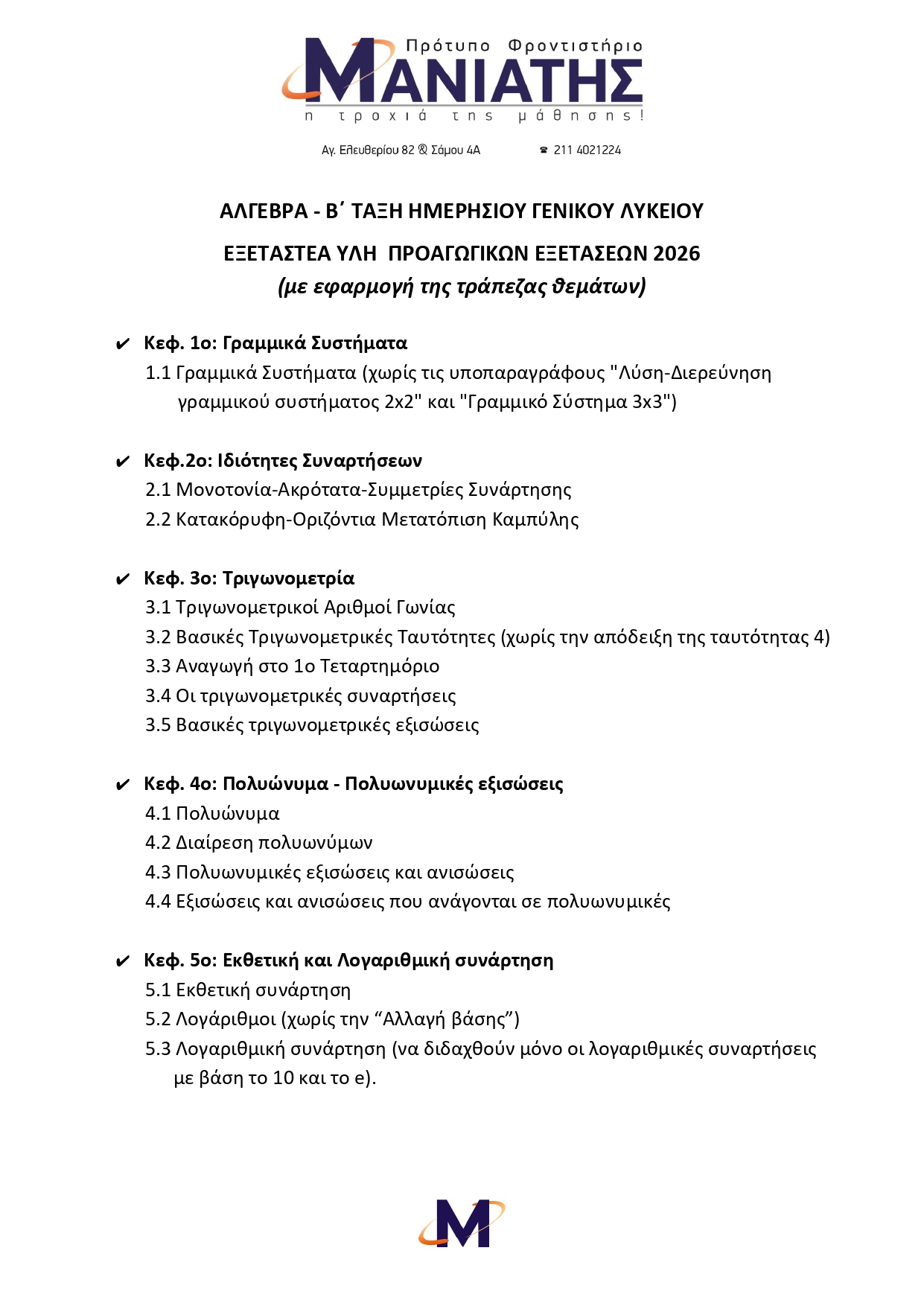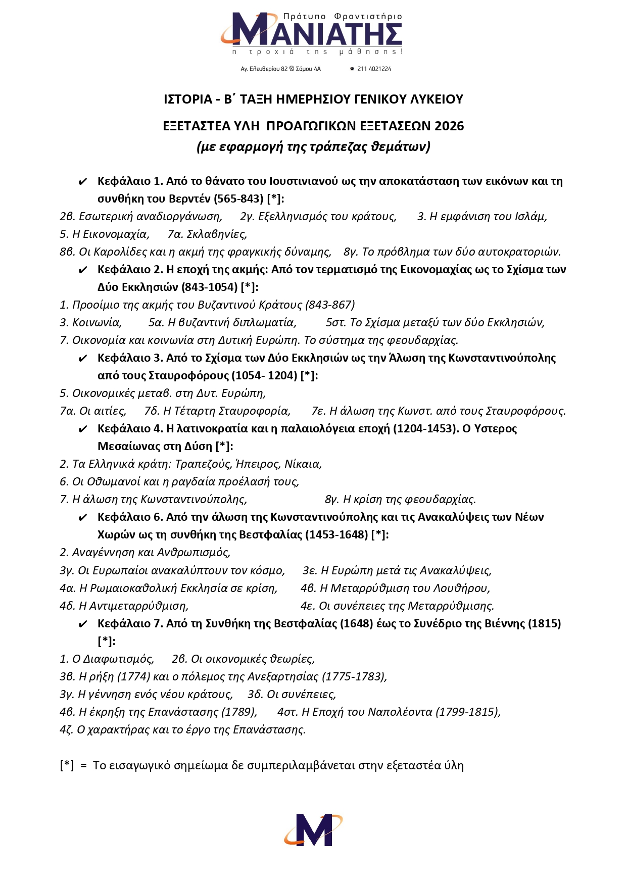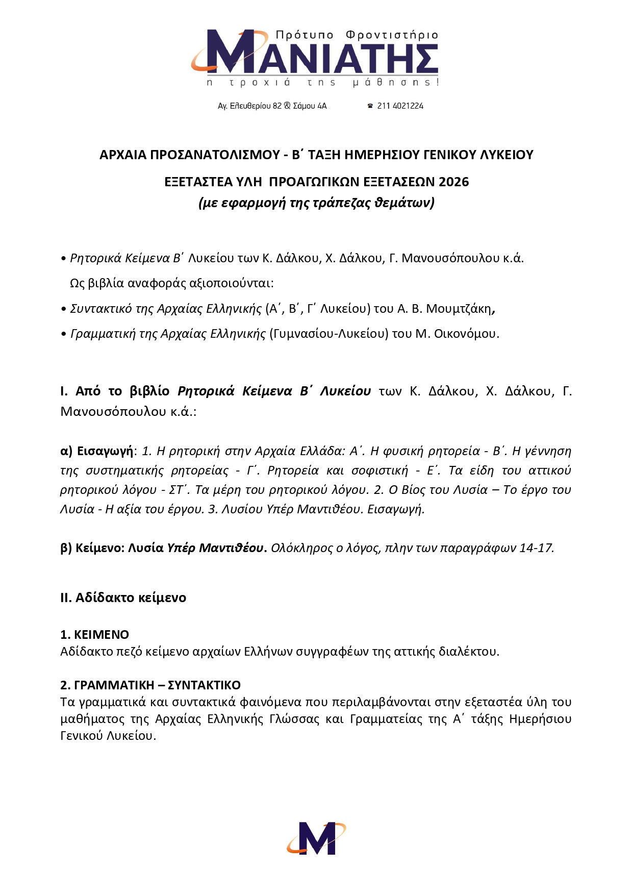 Β΄ ΛΥΚΕΙΟΥ 2026